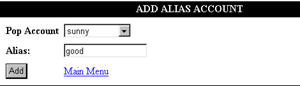 當用戶在Main Menu中按下"Aliases",畫面便會跳至 pic.8,再在此畫面中click"Create New Alias",便可進入新增別名的畫面,即pic.9。而按下"Delete"按鈕則會刪除該個別名。另外,於quick link中click "New Aliases"也可進入pic.9 的畫面